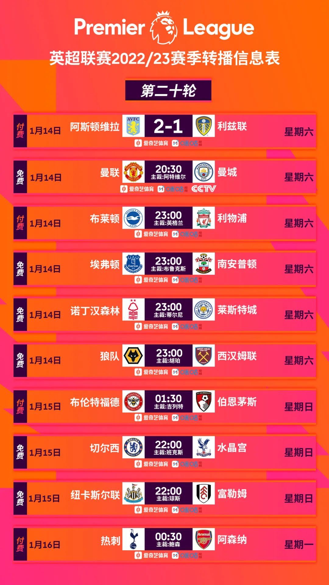 今天凌晨,英超第20轮先赛一场,阿斯顿维拉2-1利兹联。