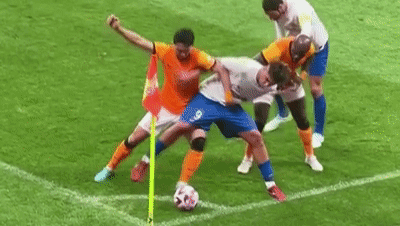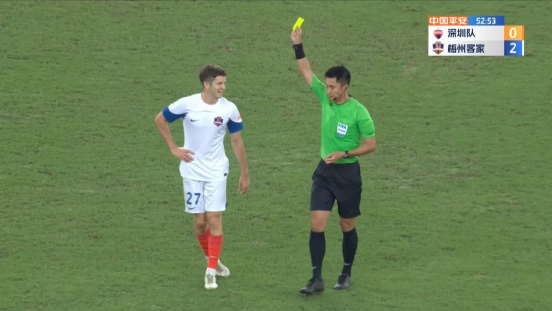 还是这场比赛,第 53 分钟,科索维奇在类似的情况下踢到了郑达伦身上。这一次,主裁判马宁向科索维奇出示了黄牌。