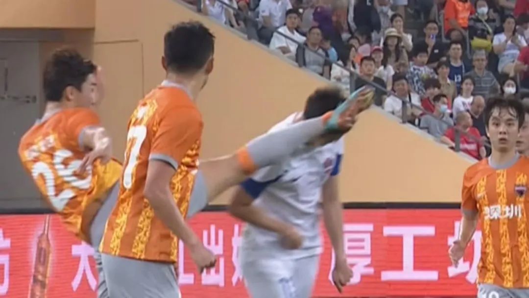王学智:深圳队元敏诚与对方争抢高空球时的动作踢到对方头部,有伤及对方的危险,这是一个鲁莽的犯规动作。裁判员未出示黄牌,并莫名其妙地判罚了间接任意球。而梅州队的科索维奇与郑达伦的争抢目的都是争夺球权,踢球队员与争顶队员之间是无意触碰,裁判员给梅州外援的黄牌值得商榷。这两个犯规大同小异,无论犯规性质及伤害程度,前者更应出示黄牌。