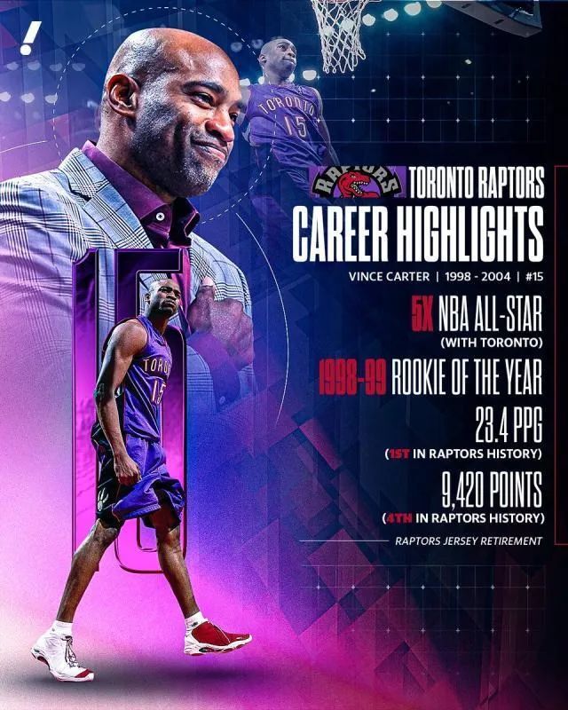 北京时间今天(3日),NBA多伦多猛龙队为文斯·卡特举办了球衣退役仪式,他是猛龙队史上首位获此殊荣的球员。
