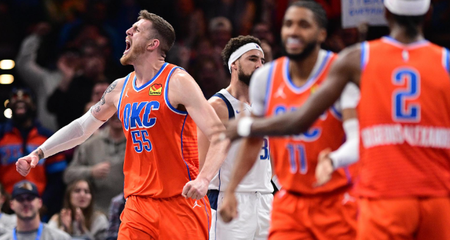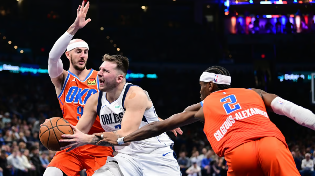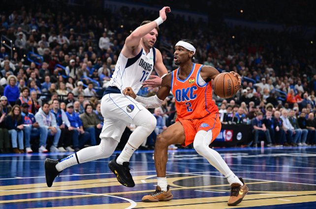 首先,独行侠和雷霆外围防守人的级别就不在一个档次,SGA只需要面对克莱、格莱姆斯或者马绍尔,而东契奇的主防人都是防阵级别的多尔特和卡鲁索。即便在赛季开始阶段没有哈尔滕施泰因,在10场比赛之后又失去了霍姆格伦,雷霆依然是联盟防守断档第一的球队。他们让对手每100个回合只得到103.9分,比排名第二的休斯顿火箭队要少得2分。