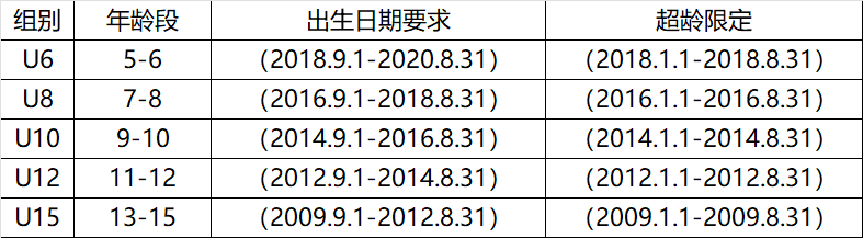 注:每队可报多名超龄球员,最多只允许有2名超龄球员同时上场