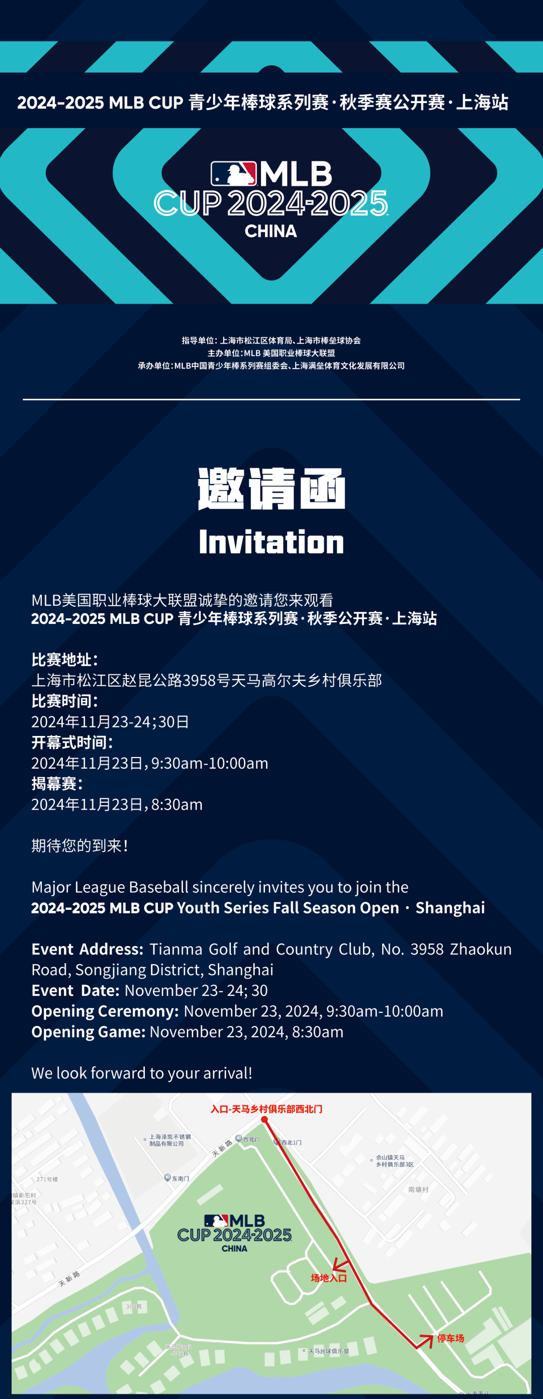 2024-2025 MLB CUP青少年棒球系列赛·秋季公开赛上海站即将拉开帷幕,诚邀各地球队来魔都相聚,一同交流球技,同赏都市繁华。让我们在这座充满魔力的城市里共创棒球运动的热血与辉煌!