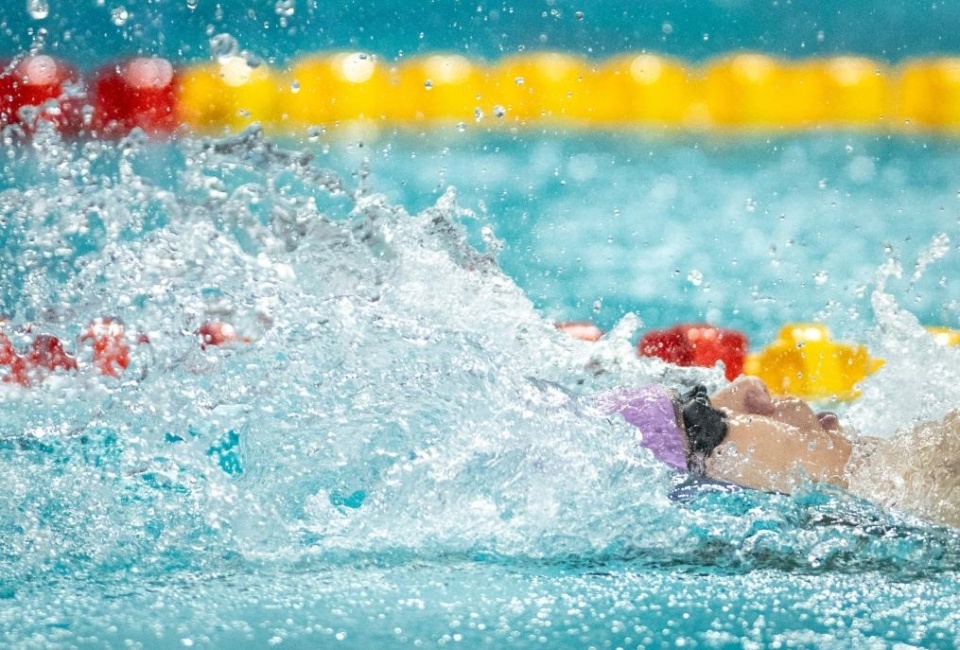 100米仰泳冠军陈泽奕前50率先转身,耗时27秒63;姜呈霖和陶冠男分列二三。