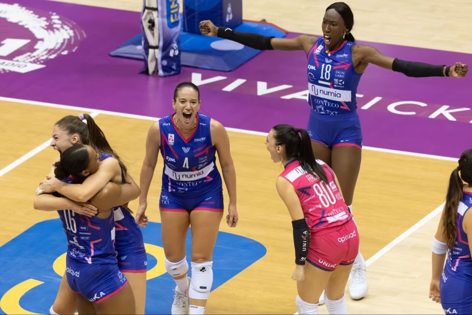 北京时间10月19日凌晨,2025-2026赛季意大利女排超级杯决赛在的里雅斯特落幕。朱婷效力的科内利亚诺苦战五局后2-3不敌米兰,卫冕受挫没能实现超级杯8连冠,五局比分为25-18、22-25、20-25、25-13和12-15。米兰女排终结了在正式比赛中对阵科内利亚诺的18连败,队史首夺超级杯冠军成功拿下赛季首冠。失去超级杯冠军让科内利亚诺女排在新赛季无缘全满贯,也结束了在意大利长达6年的统治,在过去的6个赛季该队包揽了意大利赛场的全部18个冠军(注:超级杯、意大利杯、意甲联赛)。