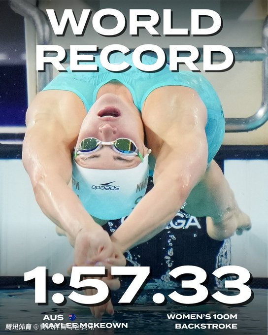 北京时间10月26日,在游泳世界杯多伦多站比赛中,澳大利亚名记凯莉-麦基翁打破了自己上周在韦斯特蒙特站世界杯赛事中创下的世界纪录,以1分57秒33的成绩触壁,比一周前1分57秒87的纪录快0.54秒,获得女子100米仰泳冠军。