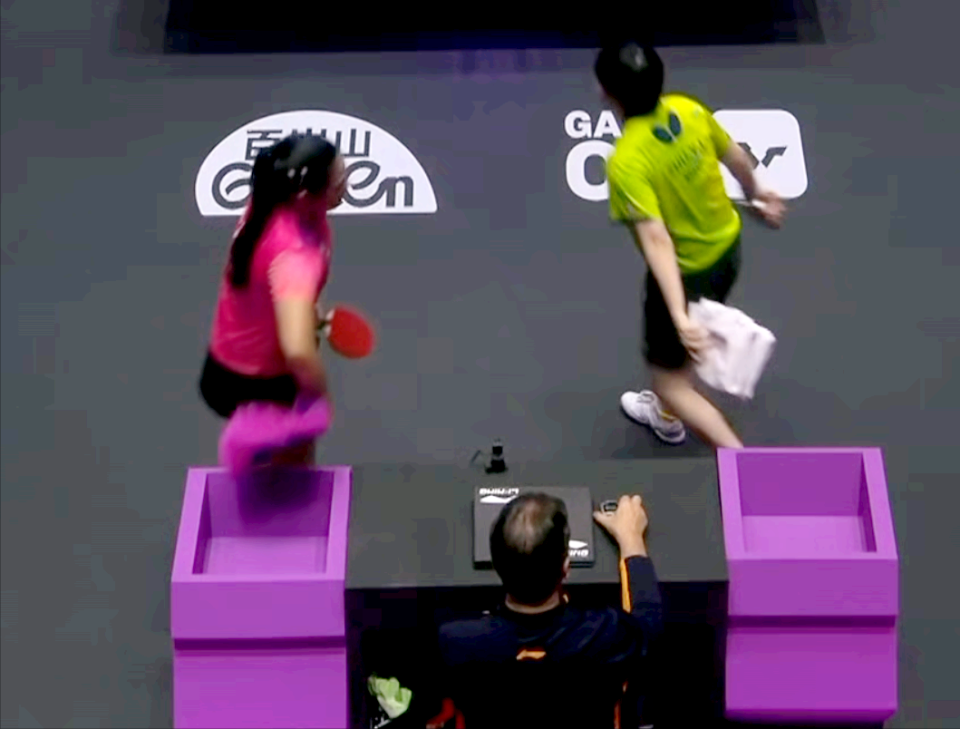 第三局迪亚兹重振旗鼓再次开局连得2分但很快又连输2球,紧接着再次加力强行破防再赢3球扩大优势。面对迪亚兹的步步紧逼,朱雨玲试图在发球等方面做出变化但效果一般,随后在3-6的位置不断逼对方失误追至5-6,波多黎各队随即用掉暂停权。