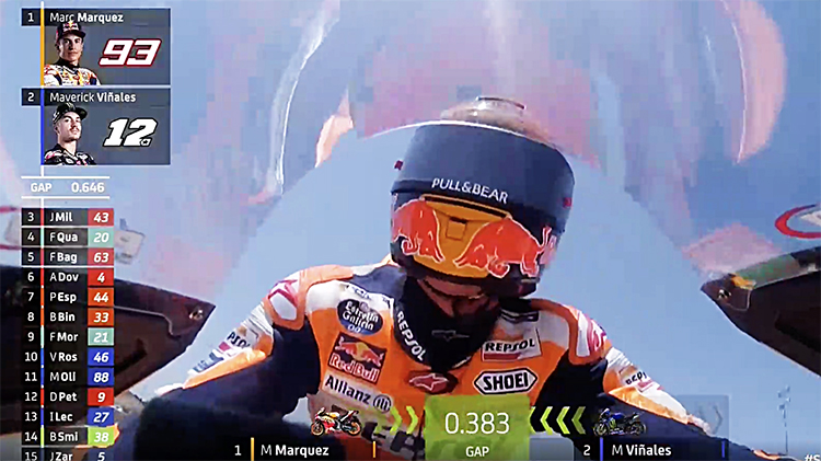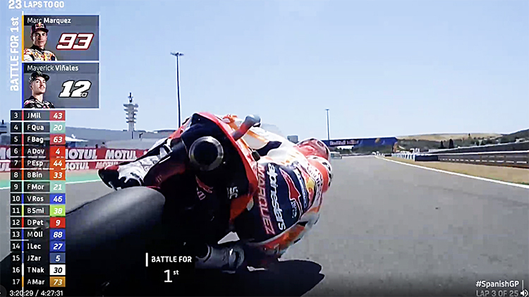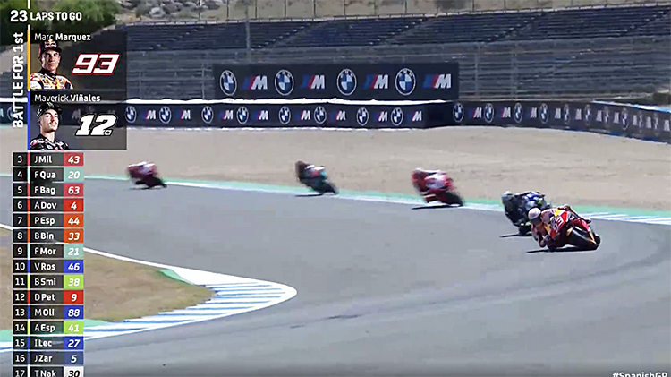 用了3圈多的时间,马奎斯升至第3,而且已经追到了第2位的维涅埃利斯后轮上。但是平心而论这时候距离领跑的雅马哈车手夸塔瓦罗已经太远,仅剩4圈,差距5秒1,如果是一个正常人,肯定就不会再勉强。但马奎斯不是地球人,其实他在这次疯狂超车的过程中有不少的危险动作,只不过对手们既然没他快,也就没跟他计较,为了避免相撞的悲剧,基本上都让了。在随后进行的F1匈牙利站上,维斯塔潘也差不多遭遇了同样的情形,出场圈撞墙便是老天爷的第一次警告,所以最后他不敢再发疯地追小黑,拿到第二就当胜利了。
