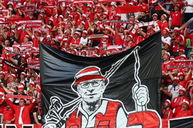 奥地利球迷在看台上打出了朗尼克的巨幅画像。