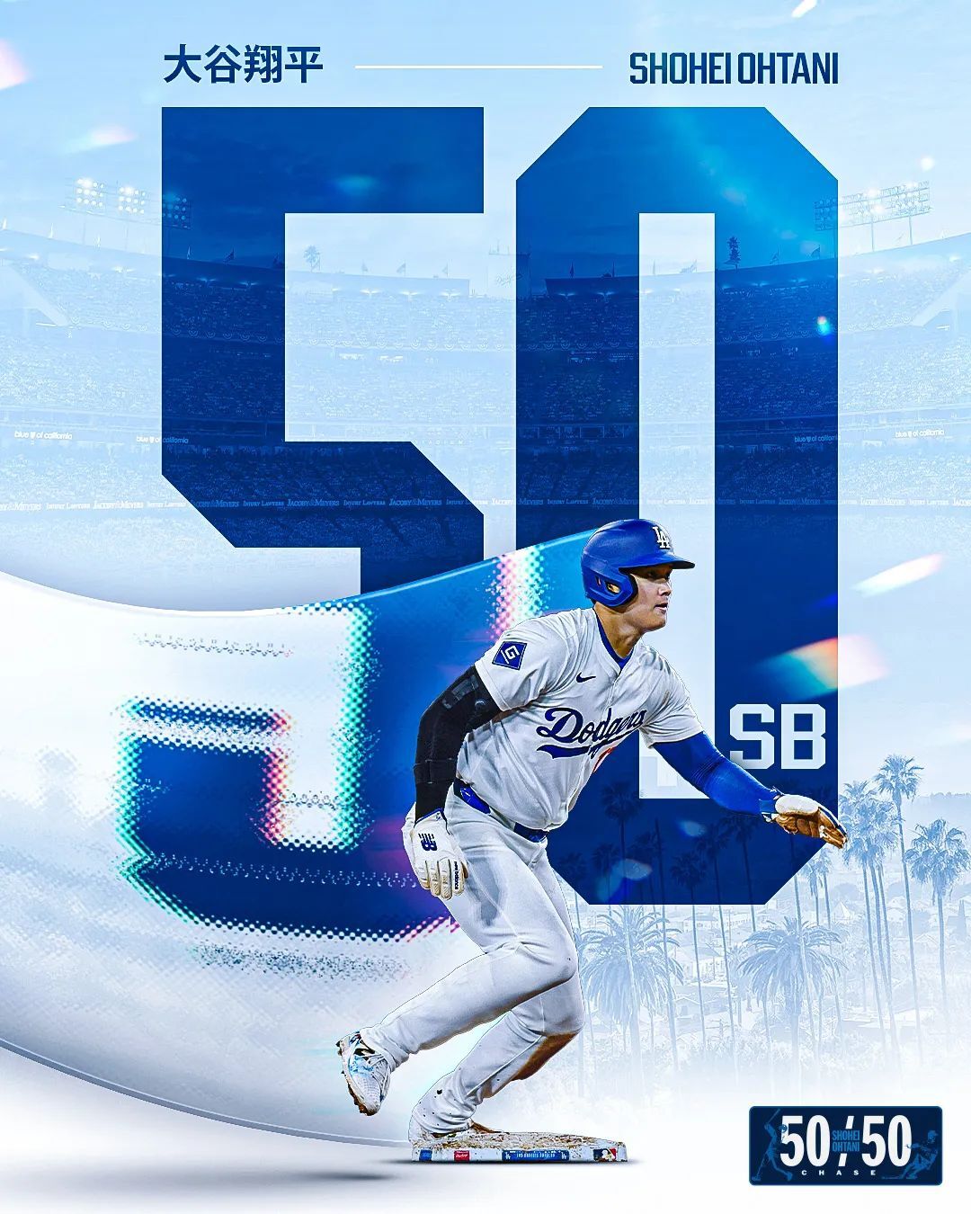 大谷今年在偷垒上的突破,让他可以打击跑垒双管齐下,创下大联盟历史上首个双50赛季。在垒包上的攻击能力也大大带动了道奇全队的进攻,帮助球队拿下国联一号种子。