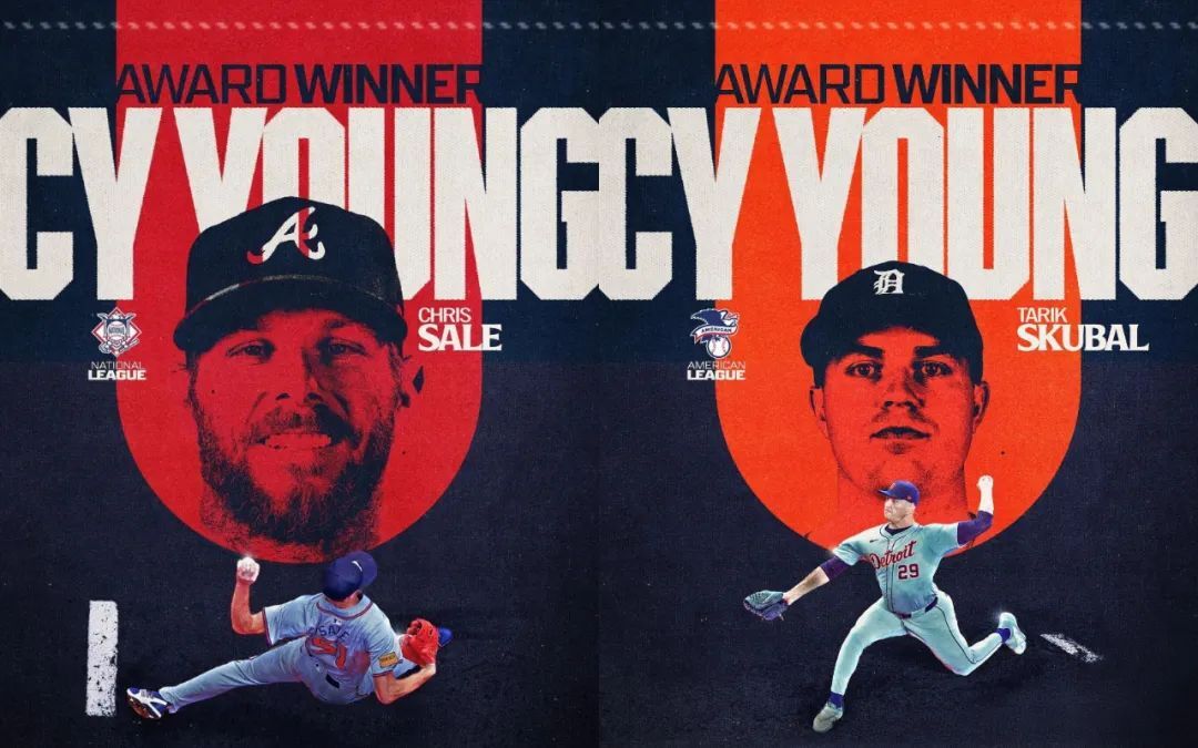 两位王牌投手——勇士队的克里斯-塞尔(Chris Sale)和老虎队全票获奖的塔里克-斯库巴尔(Tarik Skubal)在本赛季以相似的方式达到了投手的巅峰。他们在各自联盟完成投手三冠王的成就之后又一同拿下了今年的赛扬奖。这是历史上第三次由两位左投手包揽同一赛季的赛扬奖。