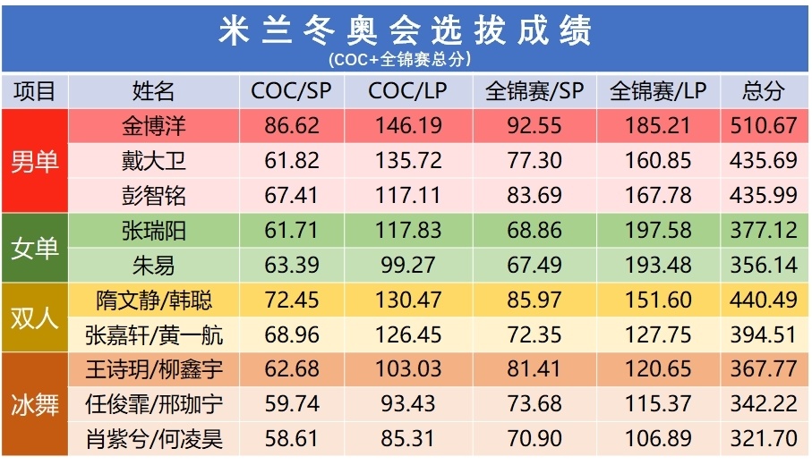 最终,出征米兰冬奥会的中国花滑队四项名单分别是: