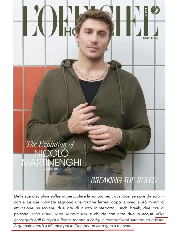 巴黎奥运会男子100米蛙泳金牌、意大利名将尼科洛.马丁嫩吉日前接受采访时表示,自己将参加3月份在深圳举行的全国春季游泳锦标赛暨首届中国游泳公开赛。