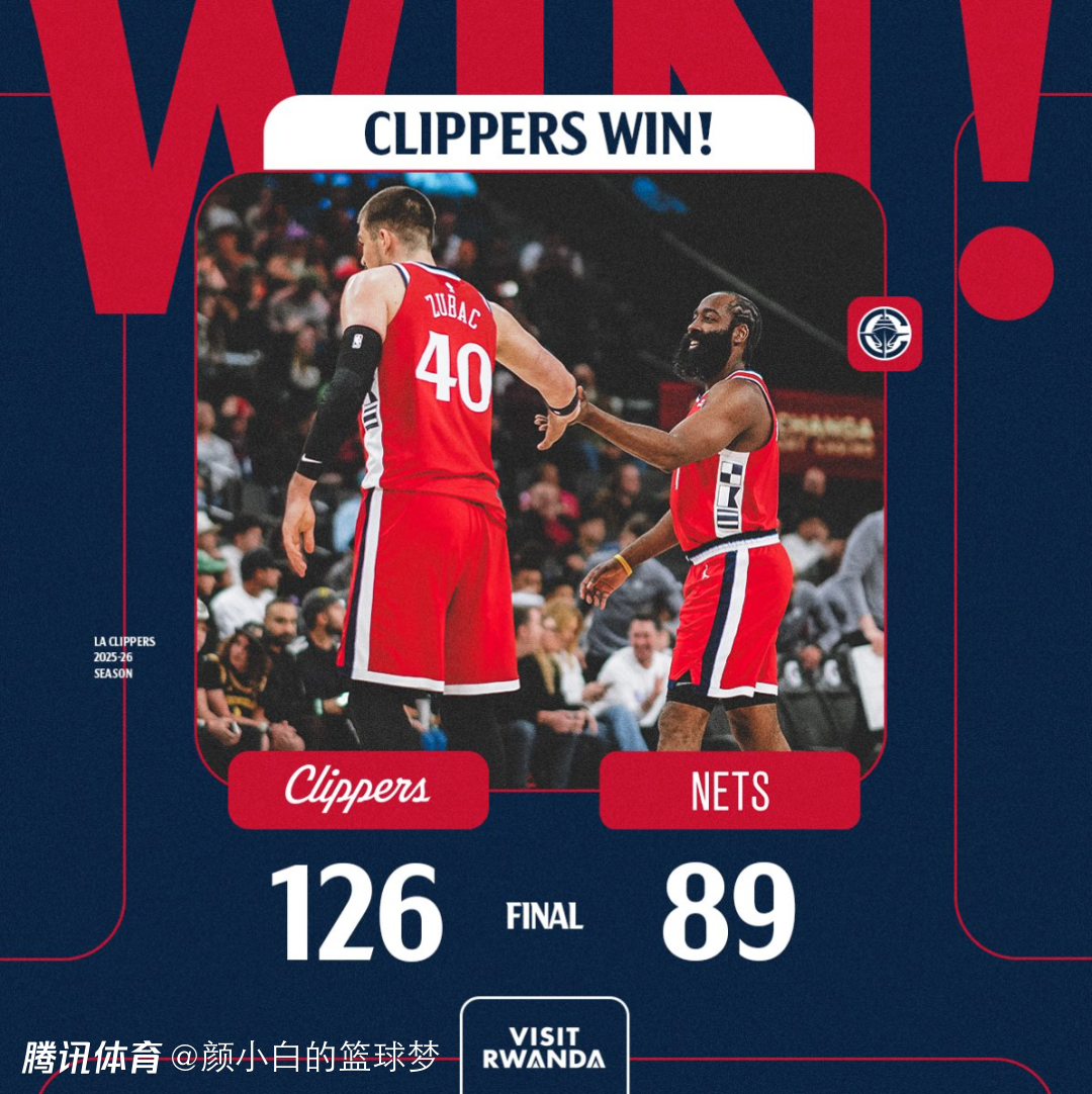 北京时间1月26日,NBA常规赛,快船126-89大胜篮网拿到二连胜。这场比赛是一节花,首节快船38-14净胜25分之多,此后的比赛快船就牢牢掌控大局,最终快船迎来了一场酣畅淋漓的大胜。