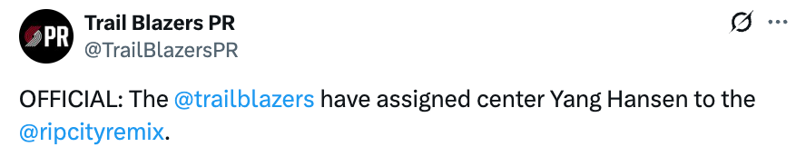 北京时间4月2日,开拓者官方宣布,将杨瀚森下放至G联盟混音队,他将随队出战G联盟季后赛。