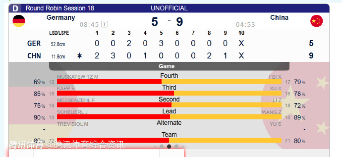 北京时间4月3日,2026年男子冰壶世锦赛循环赛继续进行,中国队以9-5击败德国,目前循环赛战绩为5胜6负,锁定第七名。