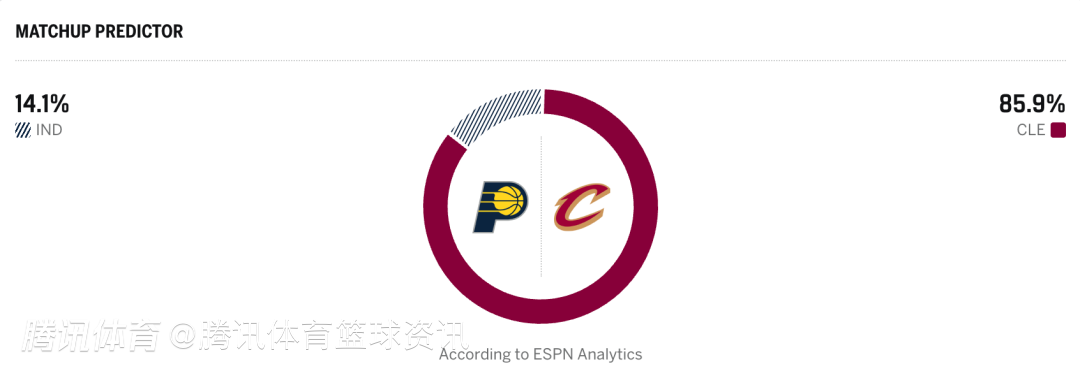 步行者14.1%,骑士85.9%