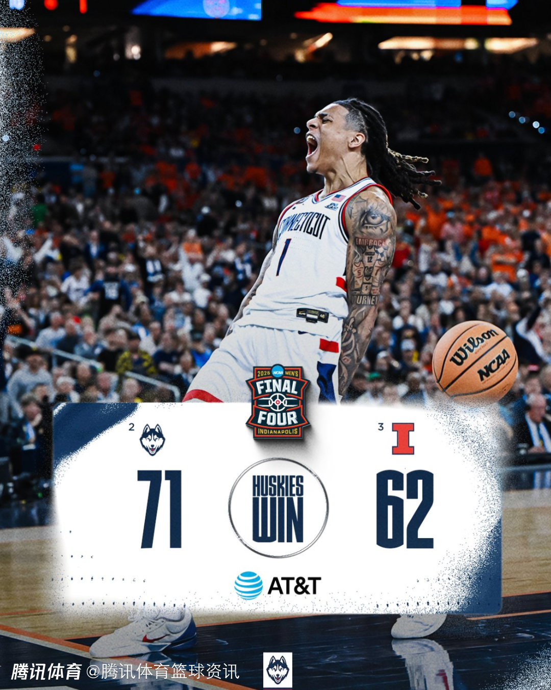 北京时间4月5日,NCAA终极四强赛,康涅狄格大学以71-62击败伊利诺伊大学,密歇根大学以91-73击败亚利桑那大学(自2018年再度进入NCAA决赛),这样一来,康涅狄格大学和密歇根大学会师NCAA决赛,康涅狄格大学将冲击四年三冠神迹(2023和2024年都是冠军),决赛将于4月7日打响。