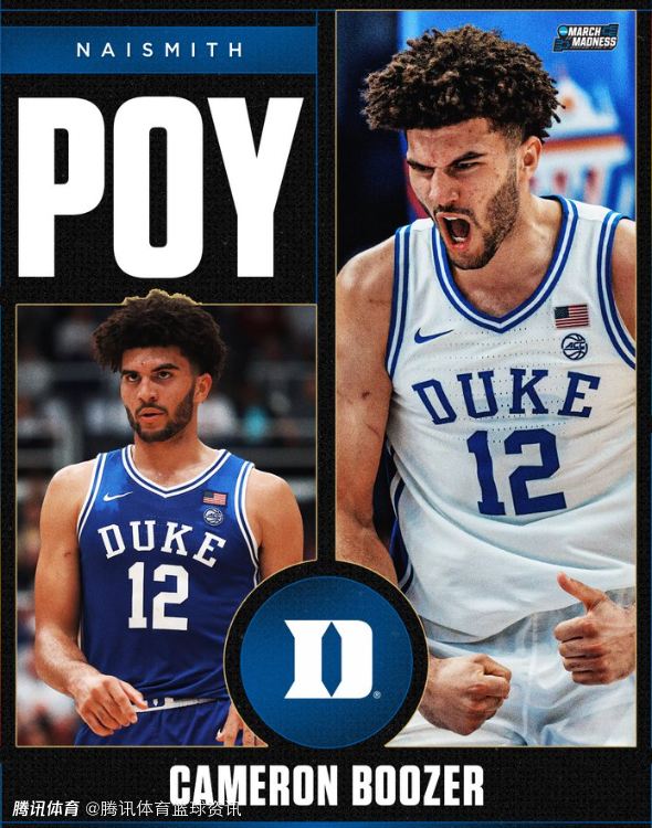 北京时间4月6日,杜克大学球星卡梅隆-布泽尔当选奈史密斯男子大学生年度最佳球员。