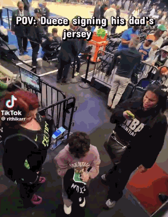 Deuce当时说道:“抱歉,我的字写得不好看。”,而球迷则回复道:“太完美了,谢谢你。”事后该球迷还展示了Deuce的签名,并配文写道:“太喜欢了。”值得一提的是,这位球迷让Deuce签的,正是他父亲塔图姆的球衣。