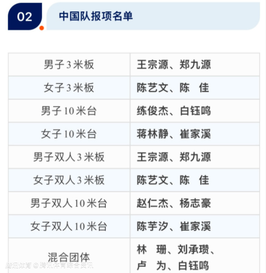 北京时间4月14日,中国游泳协会公布2026世界泳联跳水世界杯总决赛中国队参赛名单,4名奥运冠军携多名小将参加五一期间在国家游泳中心举行的此次大赛。在引人瞩目的女子10米跳台项目上,奥运冠军陈芋汐仅出战双人比赛,搭档是年仅14岁的陕西小将崔家溪。