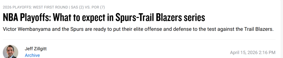 北京时间4月15日,NBA附加赛,开拓者击败太阳,成为西部7号种子,他们的首轮对手是马刺。NBA官网撰文前瞻这轮系列赛,并预测马刺最终4-1淘汰开拓者,晋级西部半决赛。以下是相关内容——