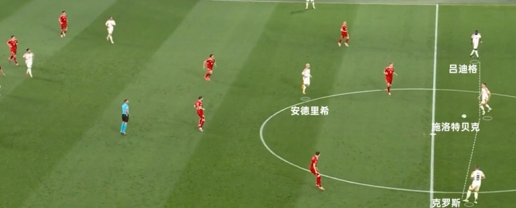 德国队要想击败西班牙,可能会主动放弃一些控球,踢更具效率的足球,即减少中后场的传递配合,直接一脚长传连线前场高点,精准打西班牙防线身后,这是最有效的进攻方式。无论吕迪格还是克罗斯,都具备一脚长传的能力。