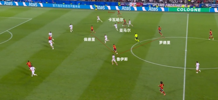 (亚马尔内线突破时,卡瓦哈尔则在外线套上接应)