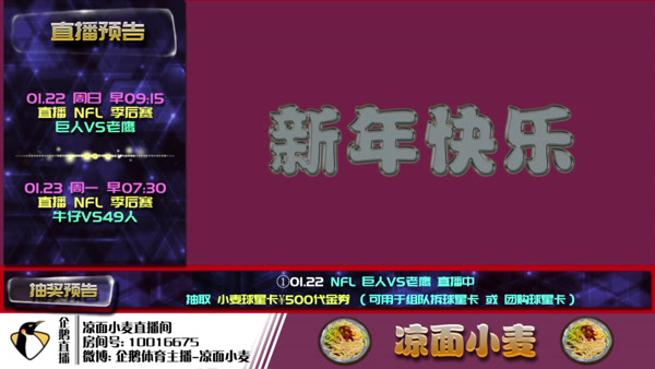【企鹅体育】“1.22 直播NFL季后赛 巨人@老鹰” 上企鹅体育,更专业的体育赛事,更精彩的弹幕吐槽等你来看!